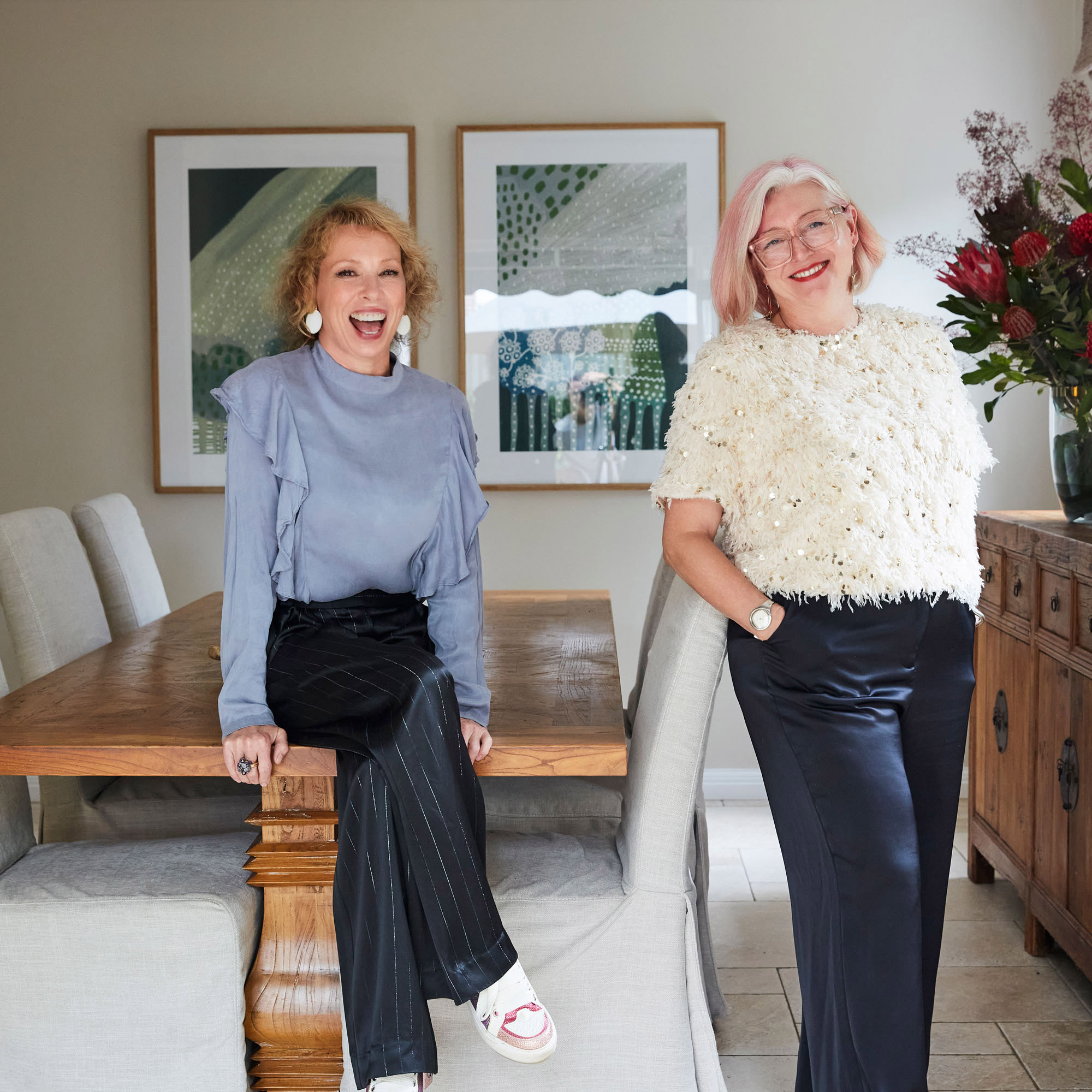 Bespoke curated furniture in open dining and living area by Denby Dowling Interior Design